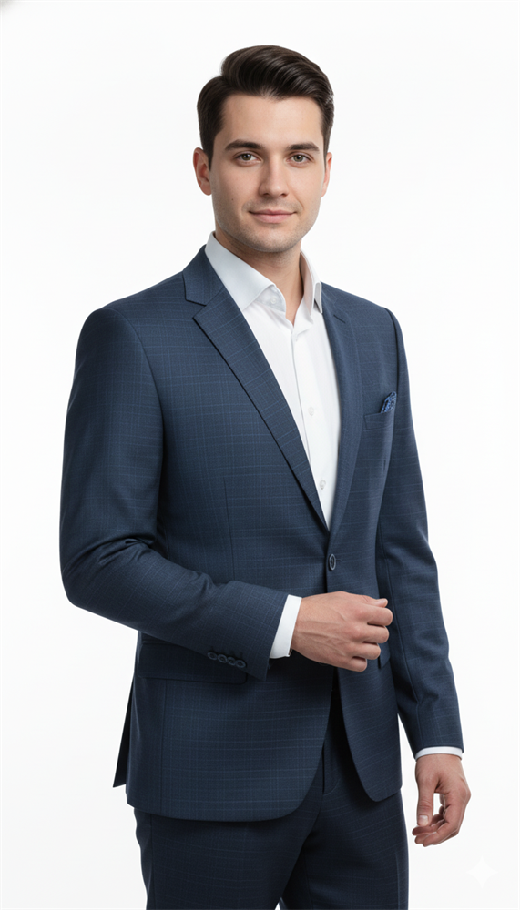 - Классический мужской однобортный костюм тёмно-синего цвета.
