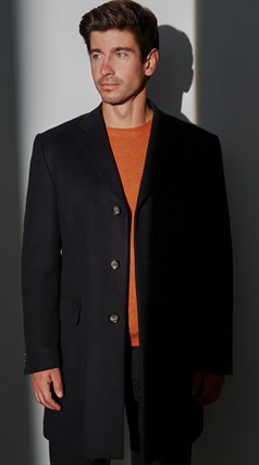 - Однобортное полуприталенное пальто из шерстяной ткани черного цвета. Однобортное с 1 шлицей сзади. Два кармана с клапанами. Два внутренних кармана. На подкладке с утеплителем.